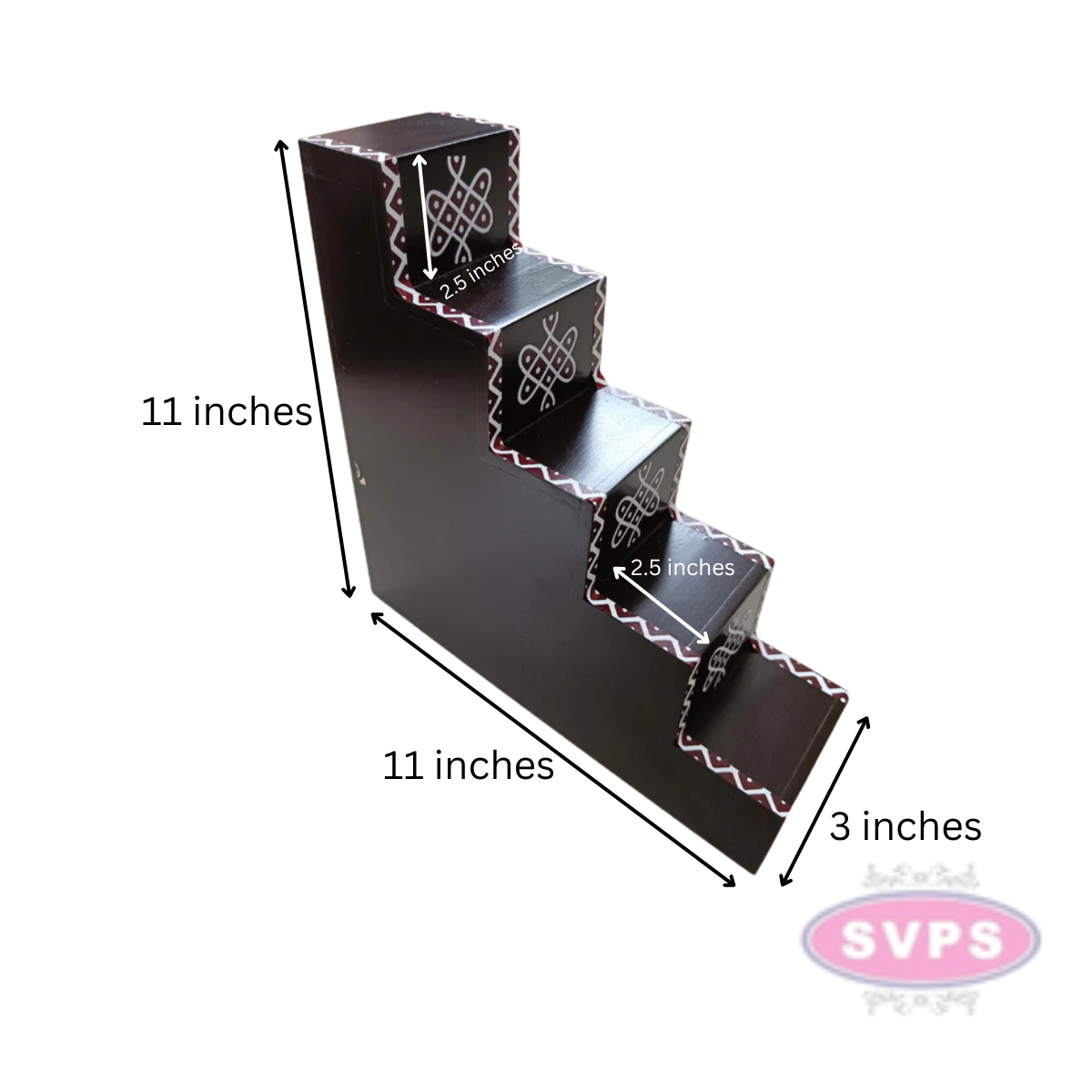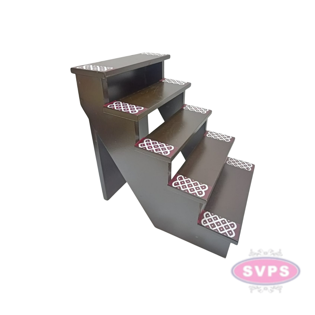 Enhance your home decor with the Wooden 5 Step With Brass Ashtalakshmi Set and Wooden 5 Lamp Stand With Brass Lamp. This exquisite set combines traditional craftsmanship with elegant design, making it a perfect addition to any space.