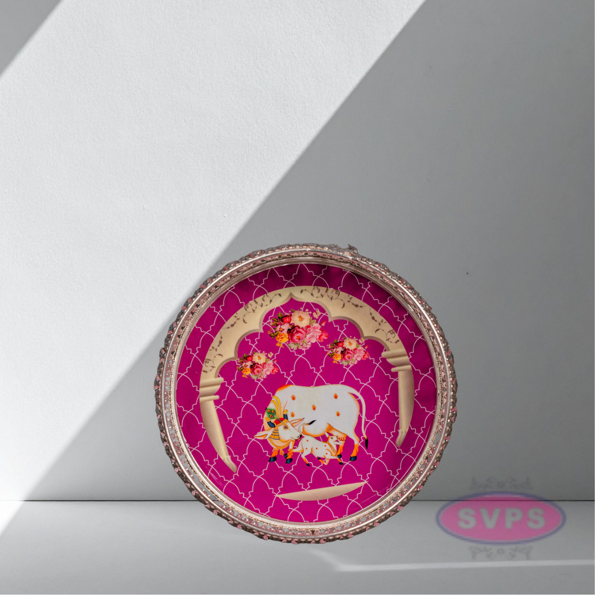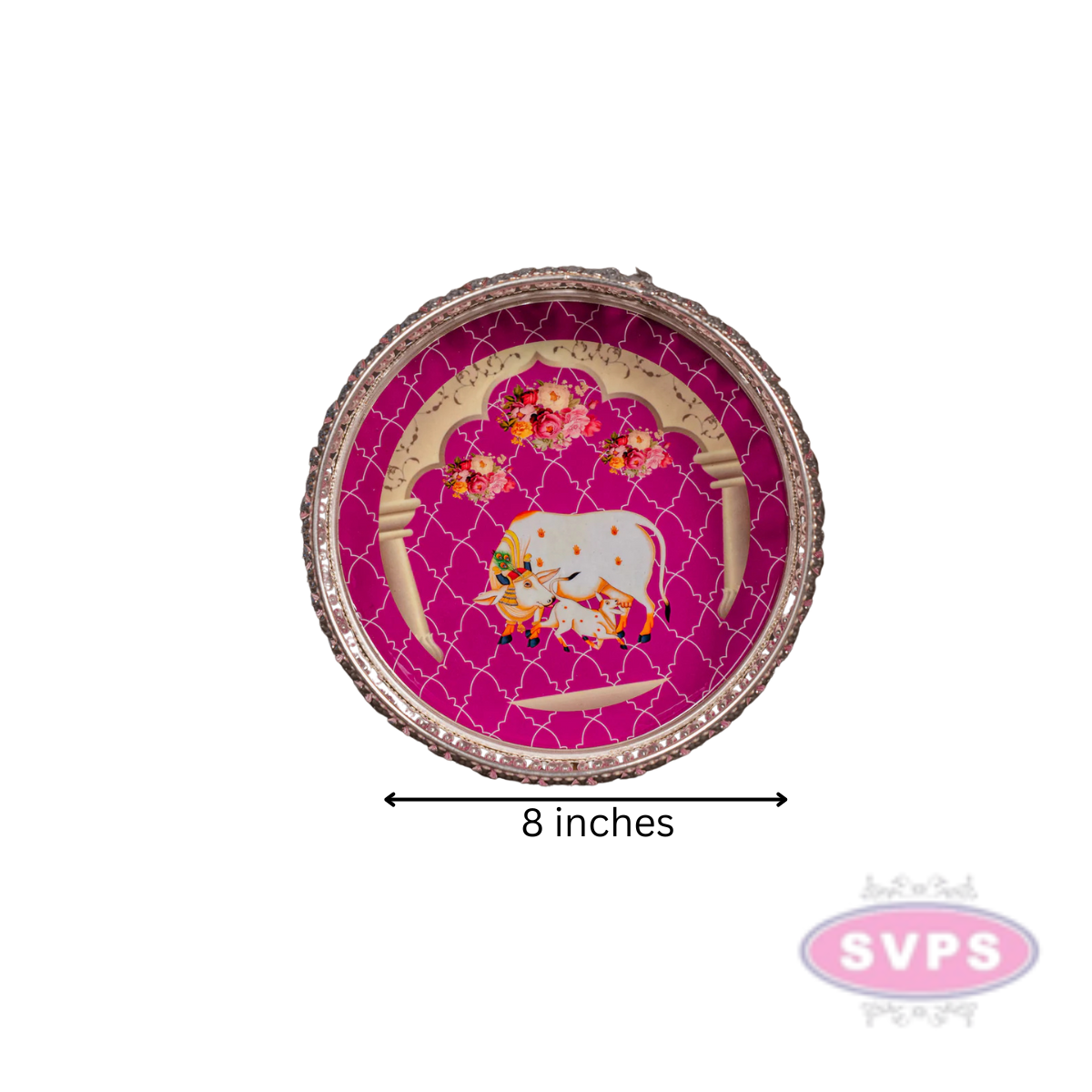 Round Shape German Silver Cow And Calf Tray