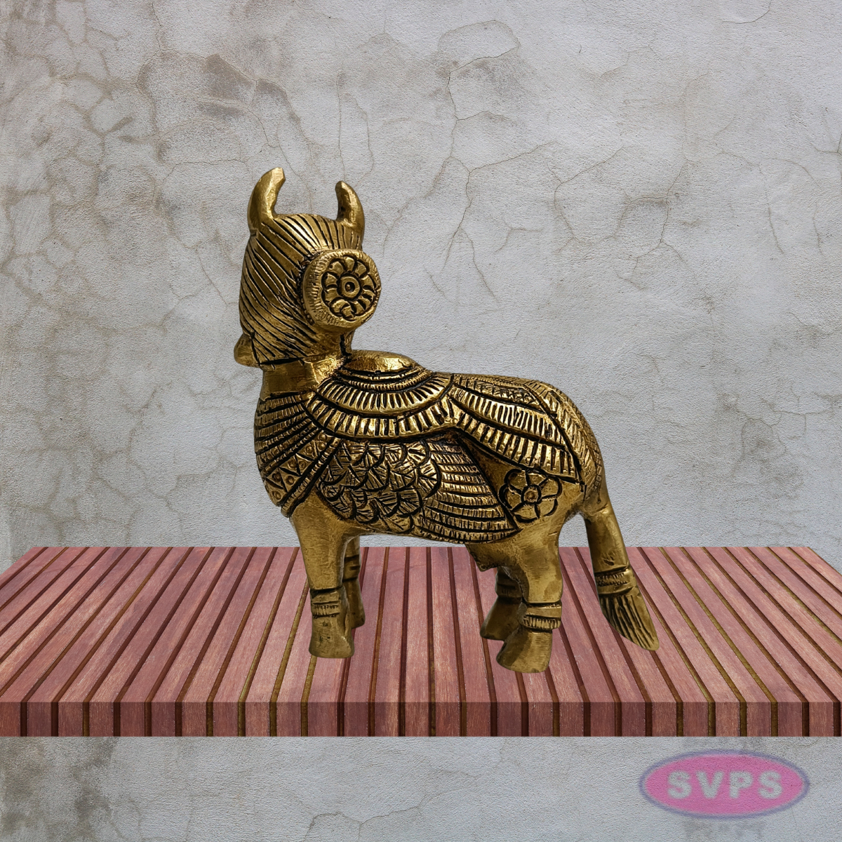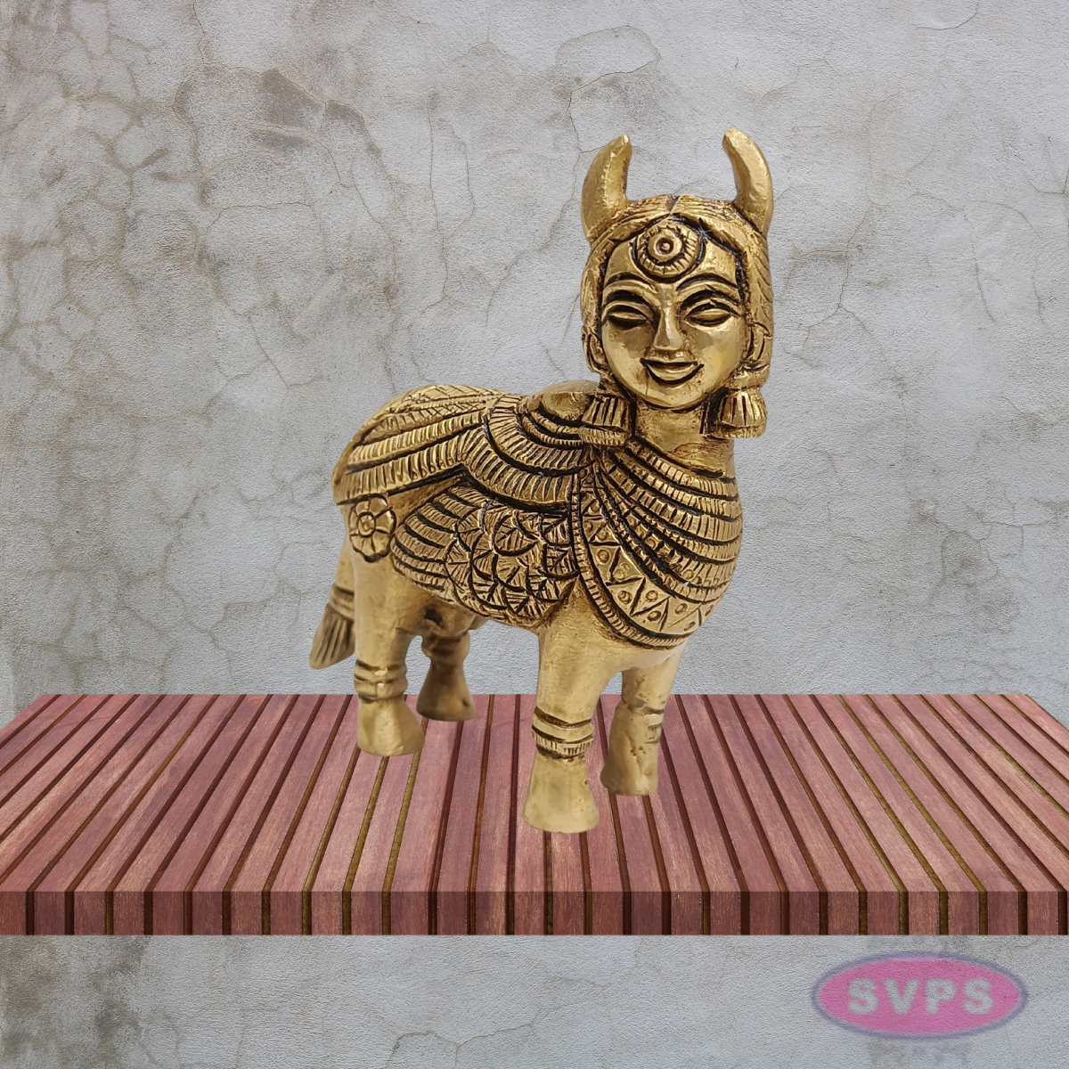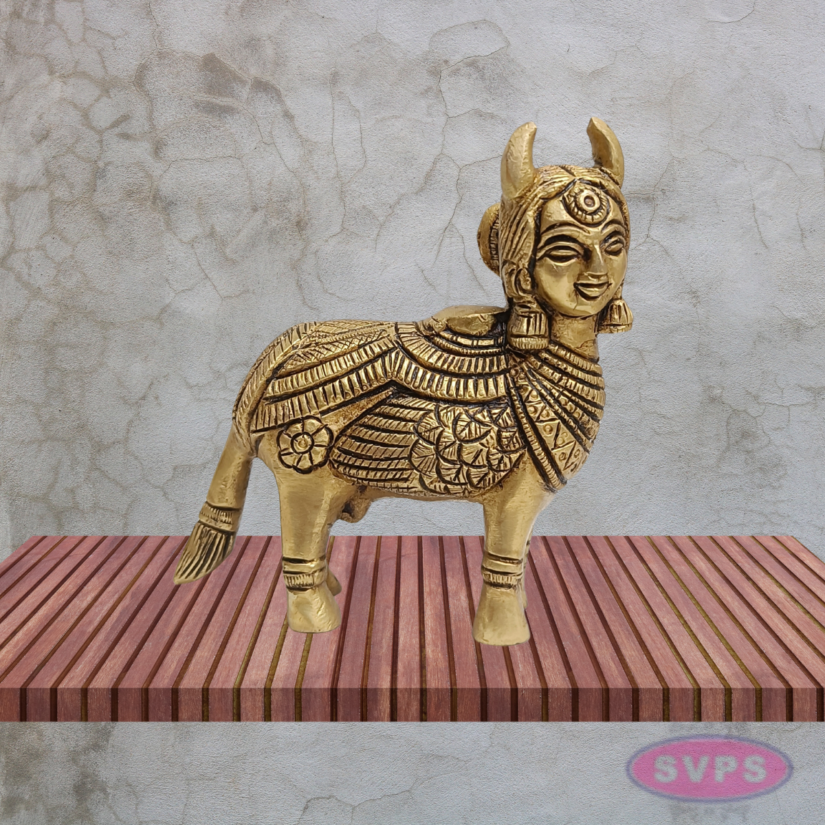 Kamadhenu Cow Brass Idol 4 Inch Ornate Carved Gomata Statue