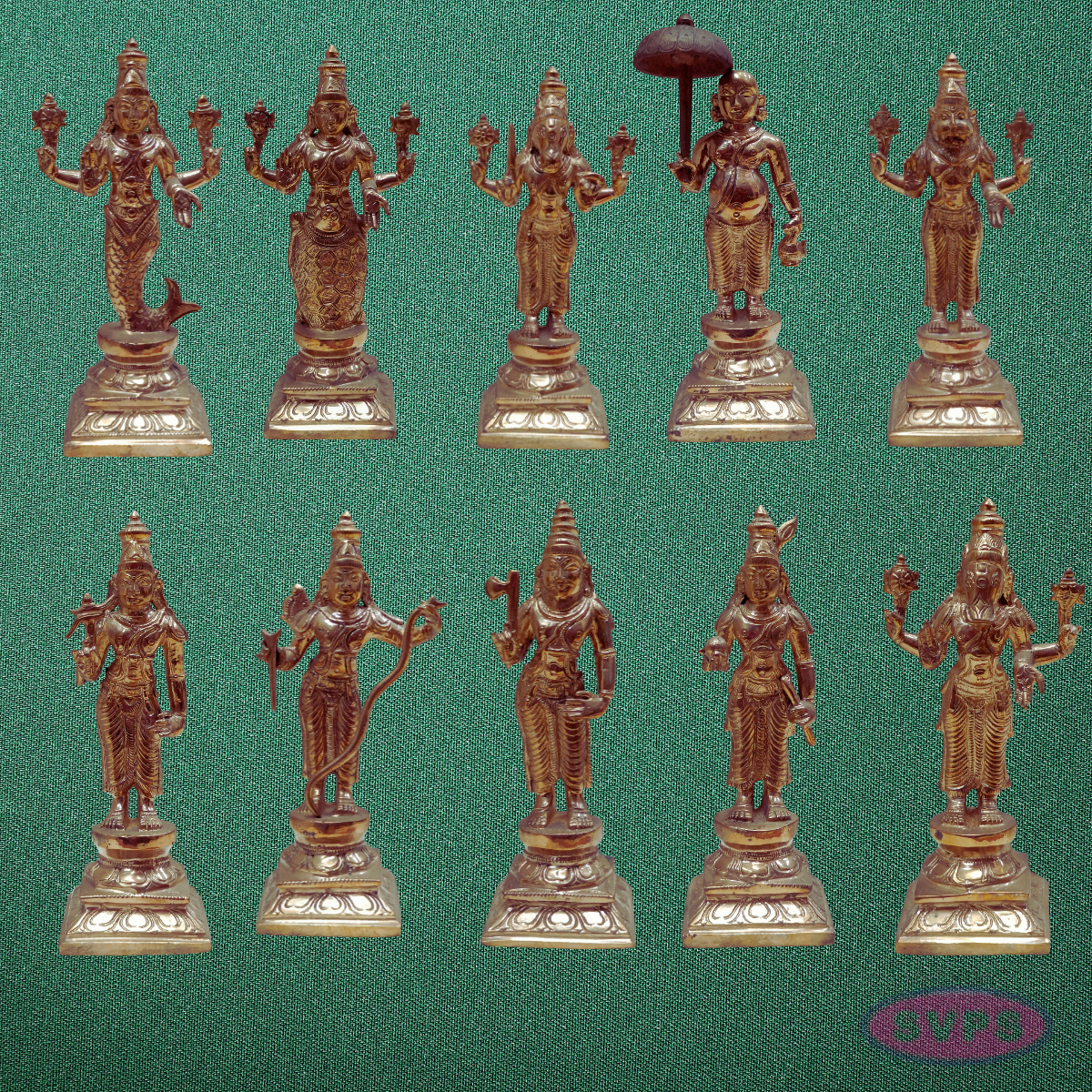 Traditional Panchalogam Dasavatharam Idol Set – Ten Divine Forms of Lord Vishnu