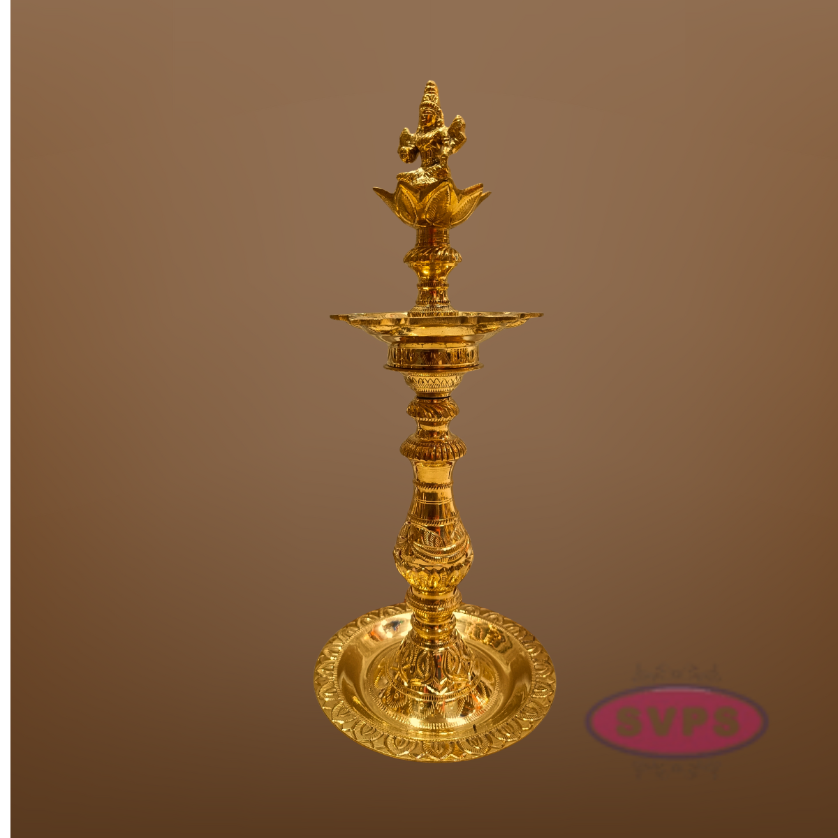 Brass Goddess Lakshmi Kuthu Vilakku – Traditional Standing Oil Lamp for Pooja