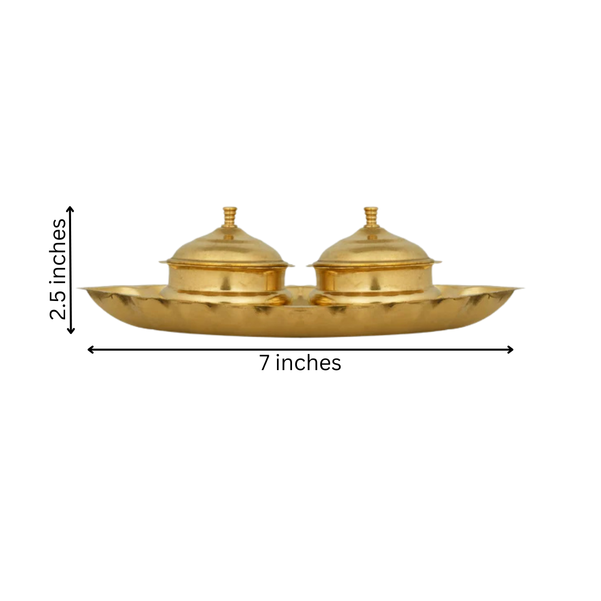 Brass Haldi Kumkum Holder With Plate / 7 Inches