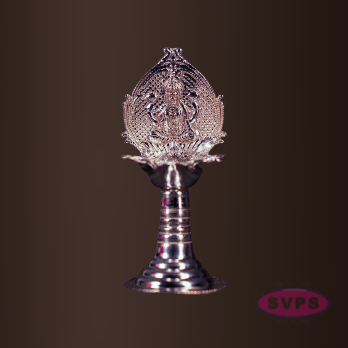 Silver Finish Lord Lakshmi Pooja Diya with Long Stand Base